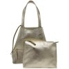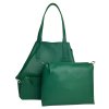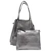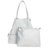 Jak už napovídá název, kabelka v sobě ukrývá ještě jednu menší kabelku a praktické pouzdro. Všechny části tři zapneme pomocí zipu. Větší kabelku můžeme v horní části sepnout pomocí kožených šňůrek, a tím dosáhneme zajímavého trojúhelníkovitého tvaru. K příslušenství patří dlouhý nastavitelný popruh, který pasuje na obě kabelky. Další vychytávkou je zipové pouzdro, vybavené o krátké ouško. Můžeme jej použít jako peněženku, pouzdro na doklady nebo třeba klíčenku.