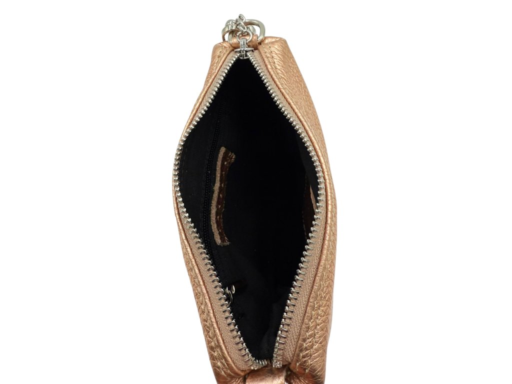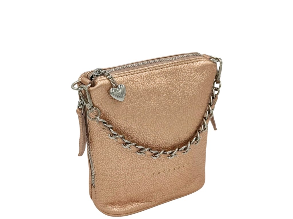 Uzavírá se zipem, na taháčku zipu ozdobné srdíčko ve stříbrném provedení. Na bocích kabelky se nacházejí ozdobné zipy, které slouží i jako kapsy. Uvnitř kabelky je látková podšívka a jedna zipová a jedna malá kapsička. Kabelka disponuje malým ouškem, které je kombinací řetízku a kůže. Lze též pomocí karabinek připnout dlouhý nastavitelný popruh.