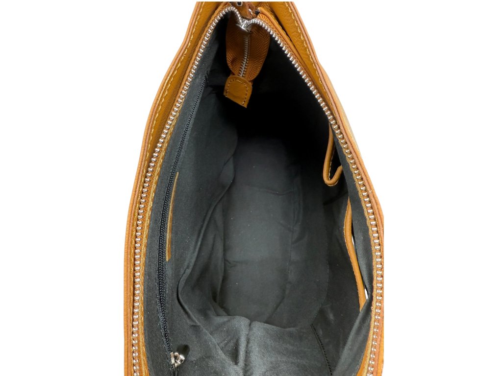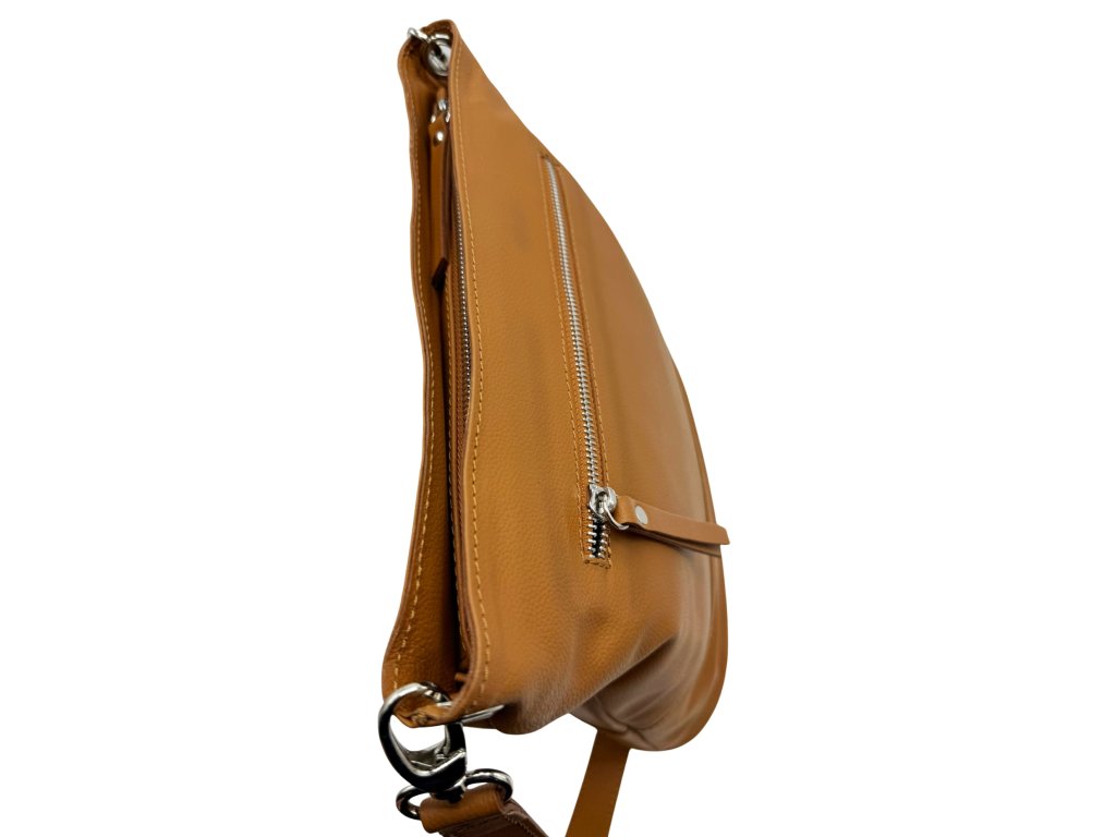 Kabelka má stříbrné doplňky v podobě přezek, zipu, kroužků. Na zadní straně kapsa se zipem. Zapínání kabelky je na zip, vnitřek tvoří látková podšívka a obsahuje jednu zipovou kapsu a dvě kapsy na mobilní telefon a doklady. Kabelka má nastavitelný popruh pro nošení v ruce i přes rameno.