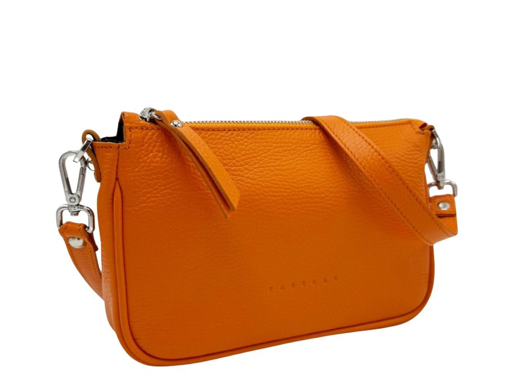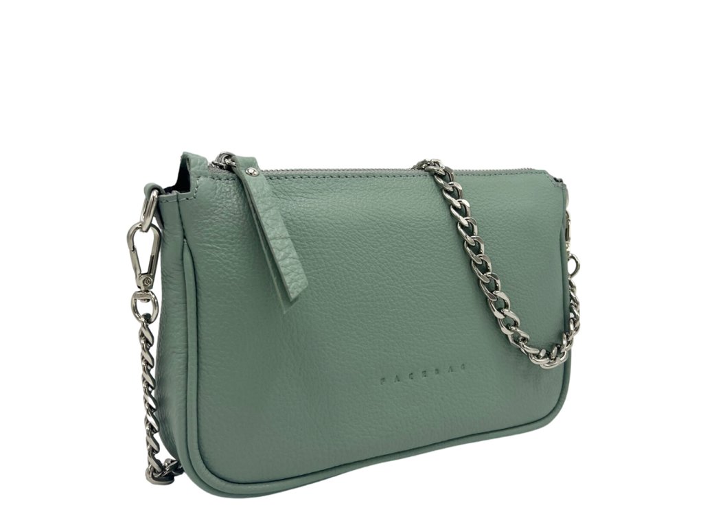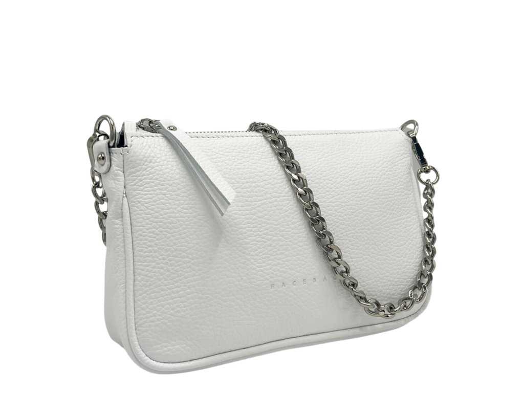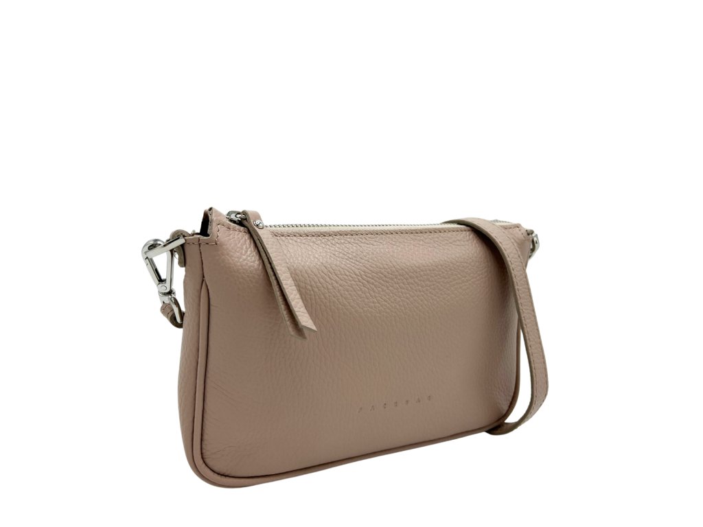 Představujeme Vám koženou kabelku z modelové řady Giada. Zapneme ji pomocí zipu a její vnitřek je podšitý látkou. Nabídne jednu zipovou kapsu a jednu volnou kapsu na drobnosti. K příslušenství patří krátké řetízkové ouško, ale i dlouhý kožený popruh. Ten si pomocí spony upravíme na požadovanou délku. Kabelku tedy můžeme nosit zavěšenou na rameni i stylem crossbody. Po odepnutí ouška i popruhu se z kabelky stane trendy psaníčko.
