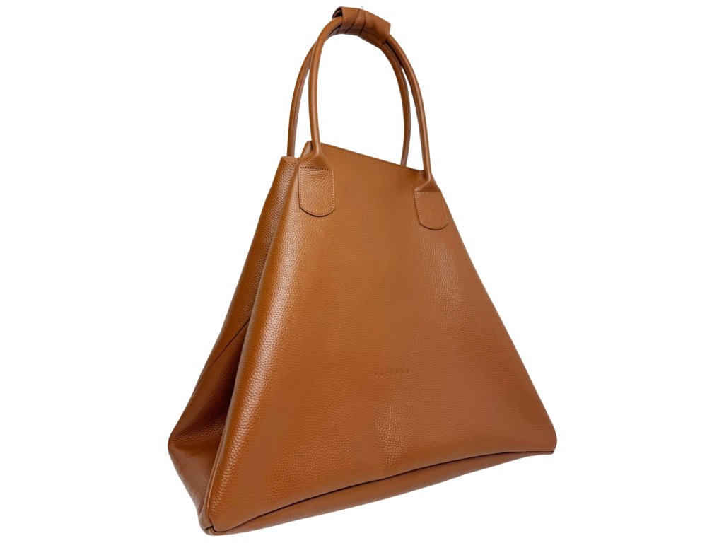 Prostorná dámská kožená kabelka trojúhelníkovitého tvaru se zipem z dolaro materiálu.