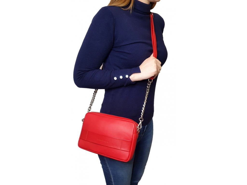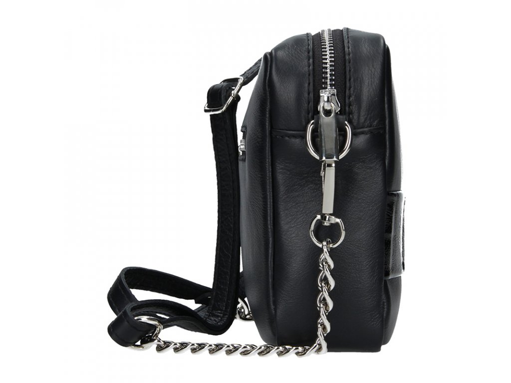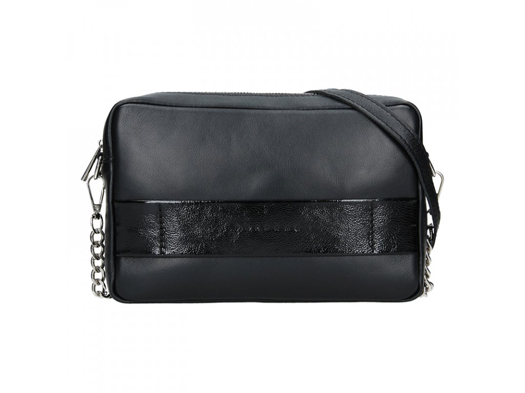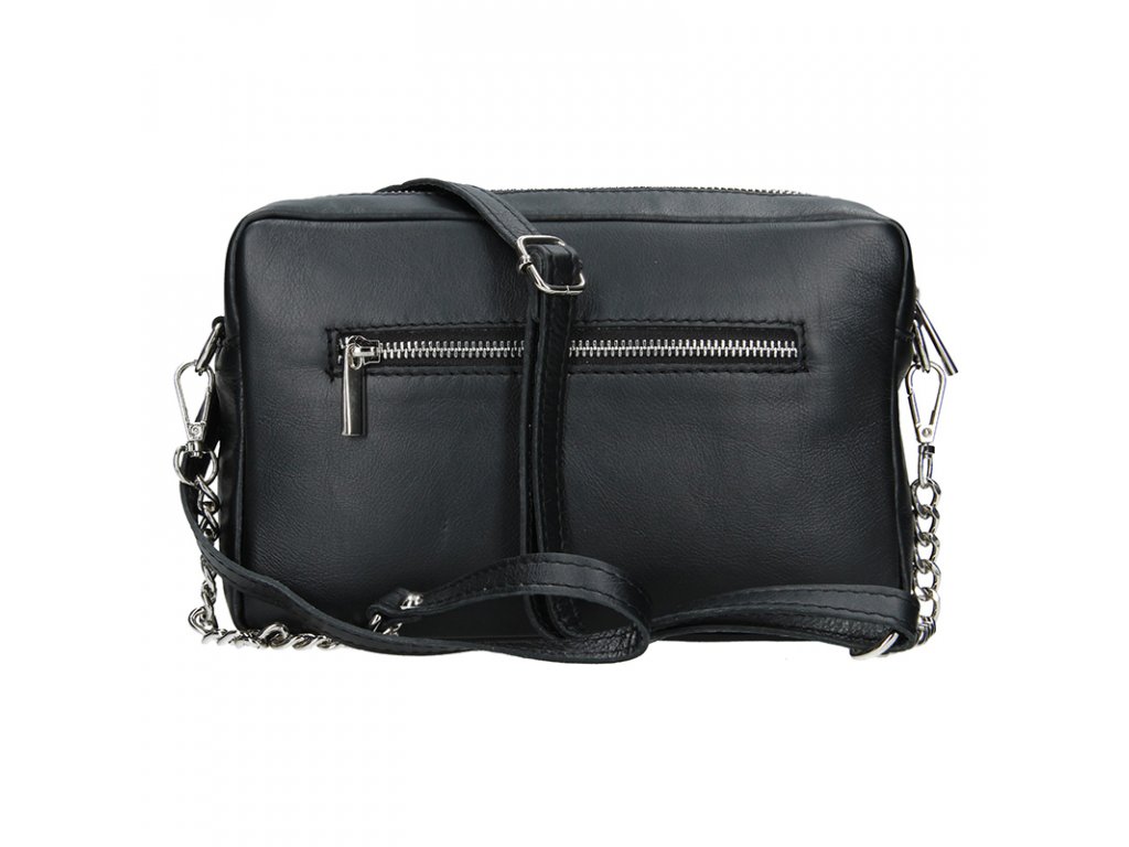 Elegantní kožená kabelka, která zaujme nadčasovým vzhledem a variabilitou. Plně uspokojí každou ženu, která vyžaduje nošení kabelky přes rameno, stylem crossbody a nebo po odepnutí popruhu, může sloužit jako psaníčko. Na zadní straně naleznete zipovou kapsu, kam si uschováte nejpotřebnější. Uzavírá se na zip a vnitřek tvoří látková podšívka, a nabízí další zipovou kapsu a kapsu na drobnosti.