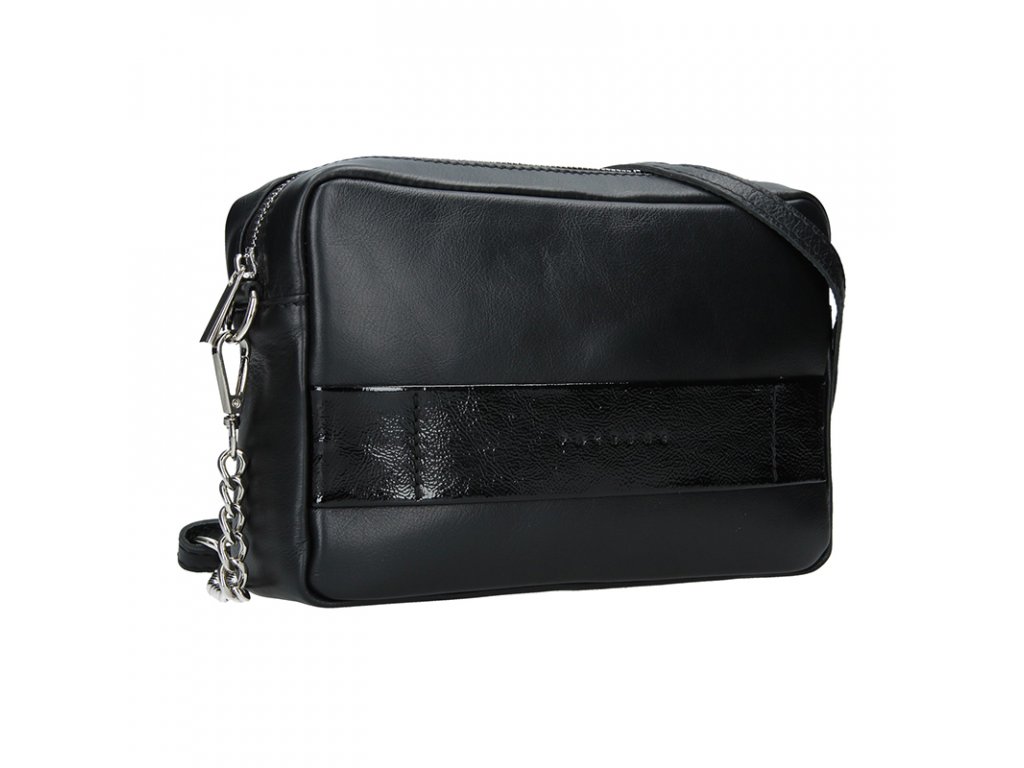 Elegantní variabilní kabelka české výroby z kvalitní hovězí kůže v černém provedením s lakovaným páskem.