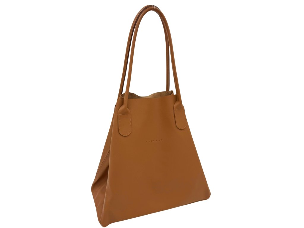 Prostorná dámská kožená kabelka trojúhelníkovitého tvaru. Pro lepší přehled věcí, které nosíme uvnitř, je vybavena o široké dno. Kabelka disponuje dostatečně dlouhými uchy pro pohodlné zavěšení na rameno. Jelikož nemá žádné kovové komponenty, je lehoučká.