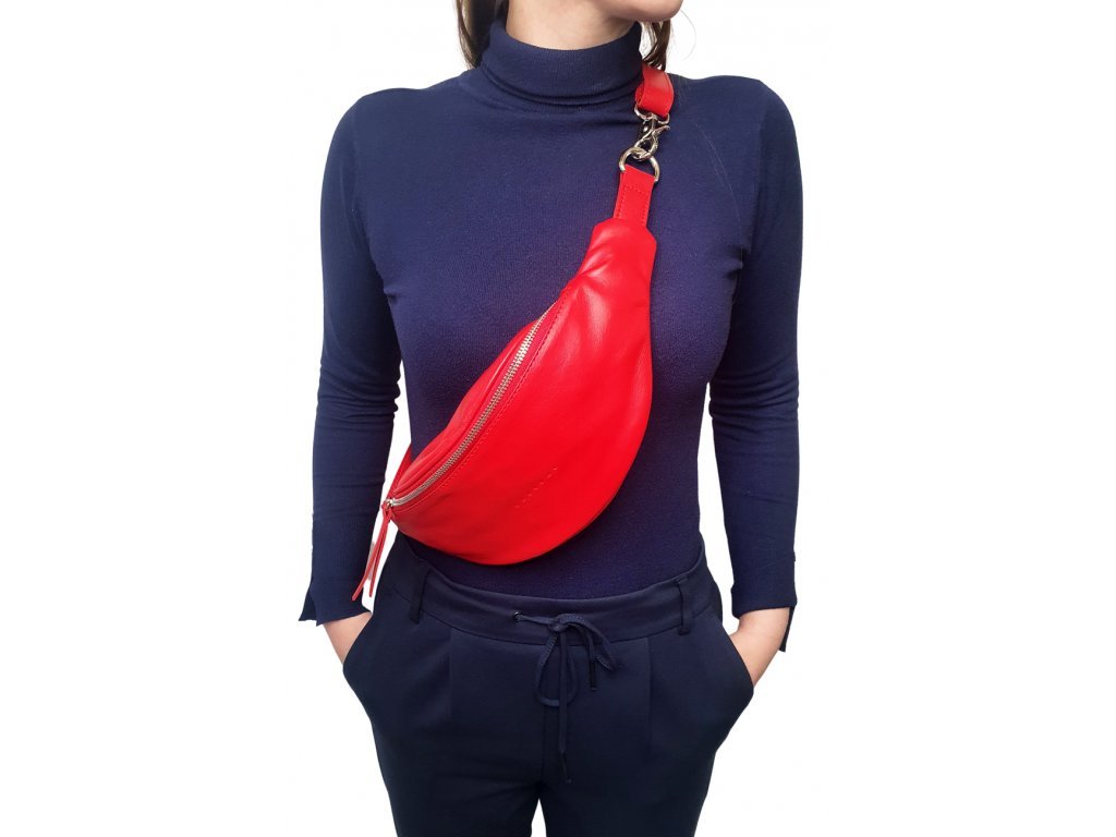Kožená ledvinka je skvělým módním i praktickým doplňkem pro každou ženu či dívku. Nejinak je tomu u naší další novinky z modelové řady SARA. Její vnitřní prostor je vybaven o textilní podšívku a zapneme jej pomocí zipu. Vnitřek disponuje praktickou zipovou kapsou. Samozřejmostí je nastavitelný popruh, široký 2cm. Je dostatečně dlouhý, a tak můžeme ledvinku nosit připnutou tradičně okolo pasu nebo současným moderním stylem crossbody.