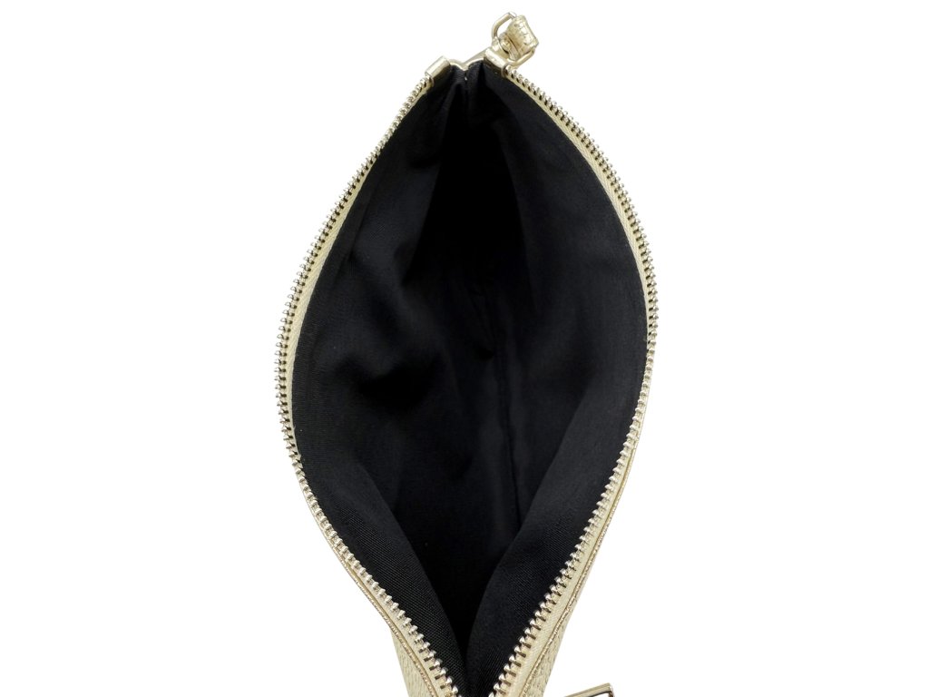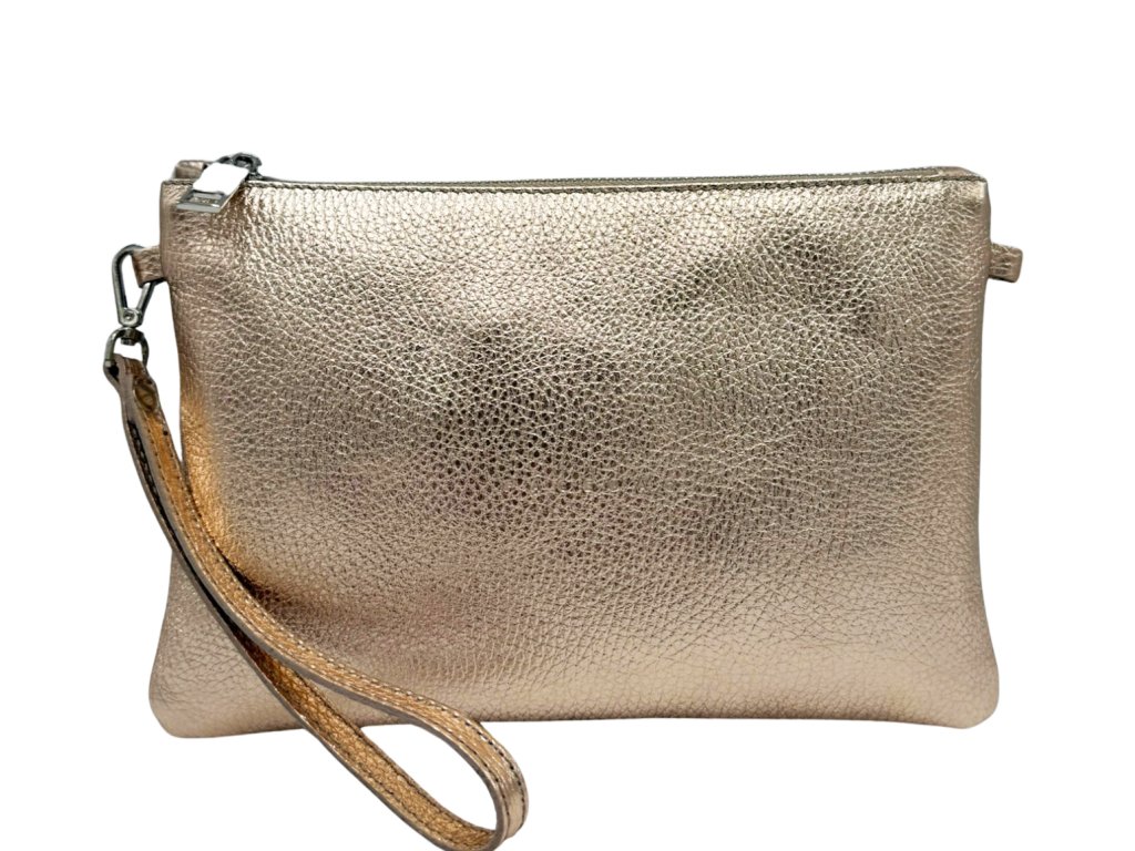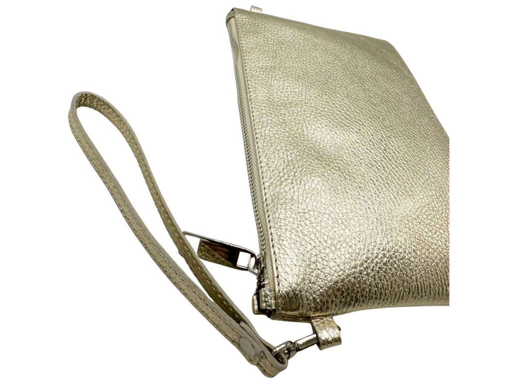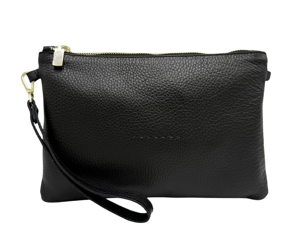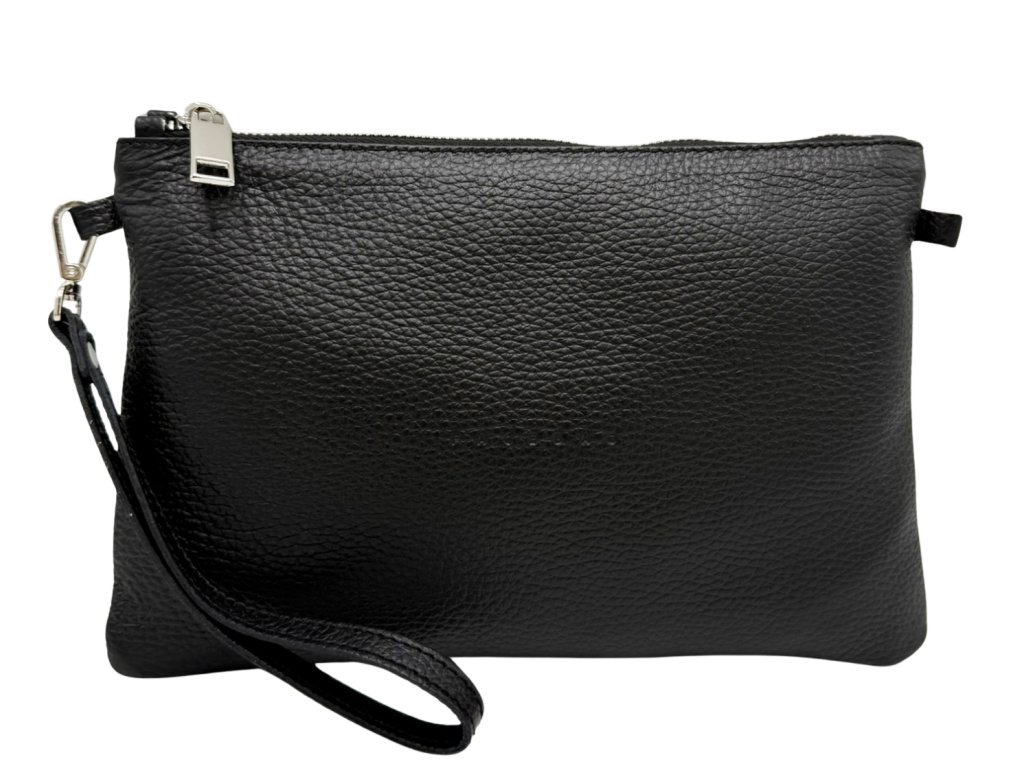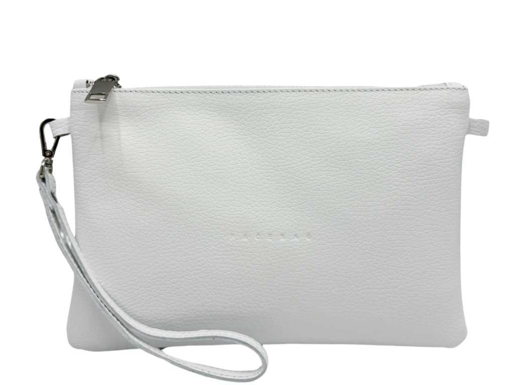 Praktická kožená taštička. Zapneme ji pomocí zipu. Díky tomu, že je malá a disponuje odepínacím koženým poutkem, můžeme ji nosit jako psaníčko do společnosti. Pro lepší přehlednost může fungovat jako organizér do kabelky. V tom případě v ní nosíme peníze, platební karty, doklady či mobilní telefon. Ale jistě poslouží i jako kosmetická taštička na cesty. Na bocích se nachází kožená očka, na která je možné připnout popruh, který je možné dokoupit.