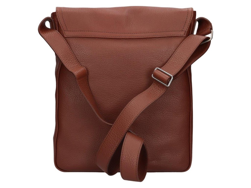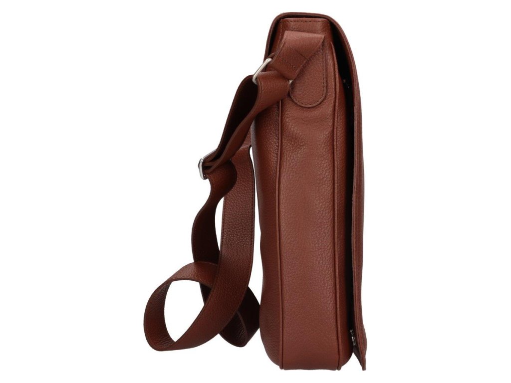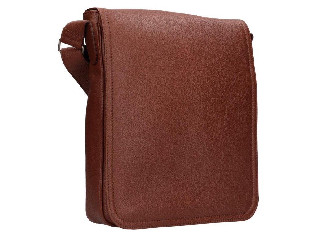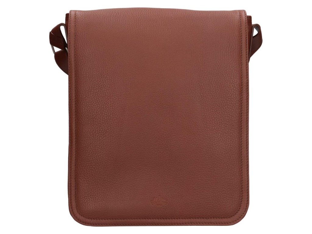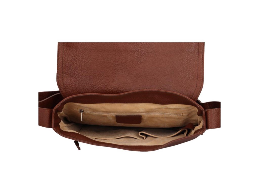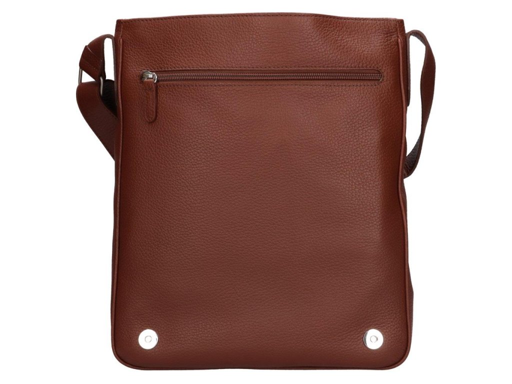 Taška je vyrobena z prvotřídní hovězí kůže, která zaručuje dlouhou životnost i reprezentativní vzhled. Pod klopou se dvěma magnetickými patentkami se ukrývá prostorná kapsa na zip, do níž pohodlně uložíte dokumenty formátu A4. V jejím vnitřku se nacházejí dvě otevřené kapsičky na drobnosti a větší zipová kapsa určená pro bezpečné uložení cenností.