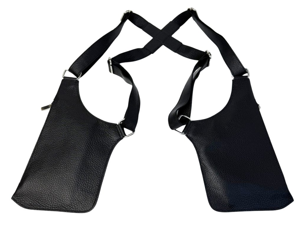 Každá kapsa má rozměry 15 × 26 × 1 cm a disponuje dvěma samostatnými zipovými přihrádkami pro telefon, peněženku, doklady nebo drobné nářadí. Robustní nastavitelné popruhy se přizpůsobí vaší postavě — maximální délka až 104 cm — a pevné kovové přezky zajišťují spolehlivé nošení i při každodenním zatížení. Jednoduchý design kombinuje funkčnost s čistými liniemi, ideální jako hands‑free doplněk pro pracovní i volnočasové aktivity.